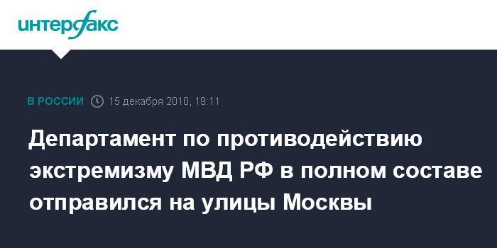Москва. 15 декабря. INTERFAX.RU - Сотрудники департамента по противодействию экстремизму (ДПЭ) МВД РФ в полном составе направлены в различные точки Москвы в связи с массовыми выступлениями молодежи, сообщил "Интерфаксу" вечером в среду источник в правоохранительных органах.
