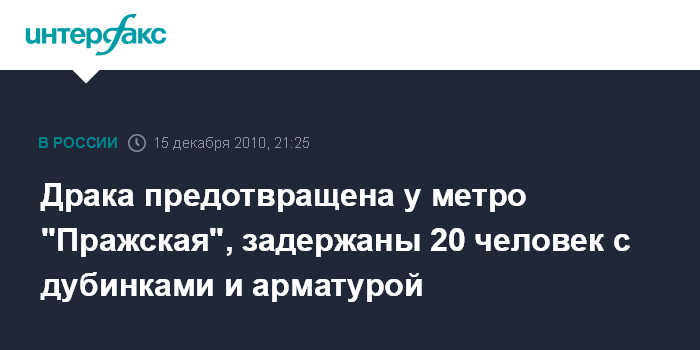 Драка предотвращена у метро "Пражская", задержаны 20 человек с дубинками и арматурой