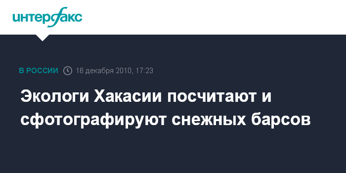 Абакан. 16 декабря. INTERFAX.RU - Экологи Хакасии начинают экспедиции по изучению среды обитания снежного барса.