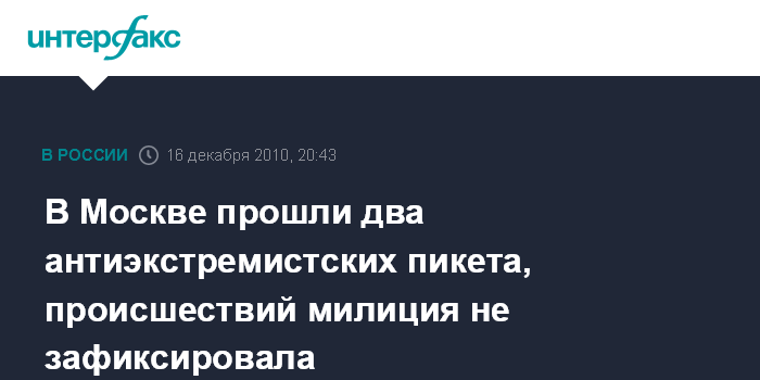 Москва. 16 декабря. INTERFAX.RU- На Чистопрудном бульваре в Москве без происшествий в четверг вечером завершились две санкционированные акции, сообщили "Интерфаксу" в управлении информации и общественных связей ГУВД Москвы.