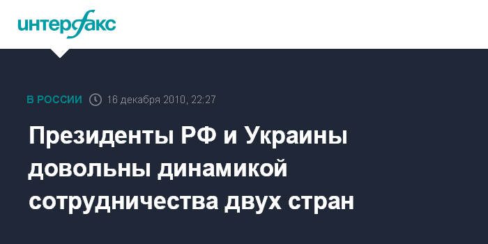 Выразив удовлетворение динамикой двухстороннего сотрудничества, Д.Медведев и В.Янукович подтвердили обоюдный настрой на последовательную реализацию договоренностей, достигнутых в ходе интенсивного диалога на высшем уровне.