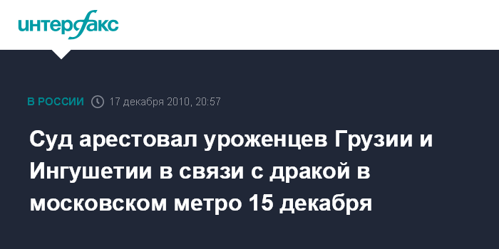Суд арестовал уроженцев Грузии и Ингушетии в связи с дракой в московском метро 15 декабря