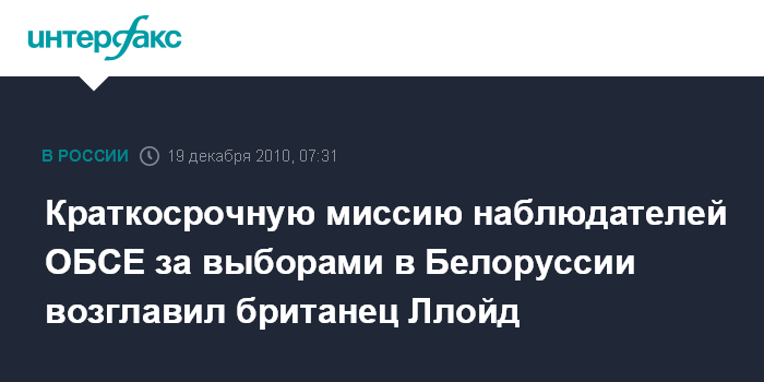 Краткосрочную миссию наблюдателей ОБСЕ за выборами в Белоруссии возглавил британец Ллойд