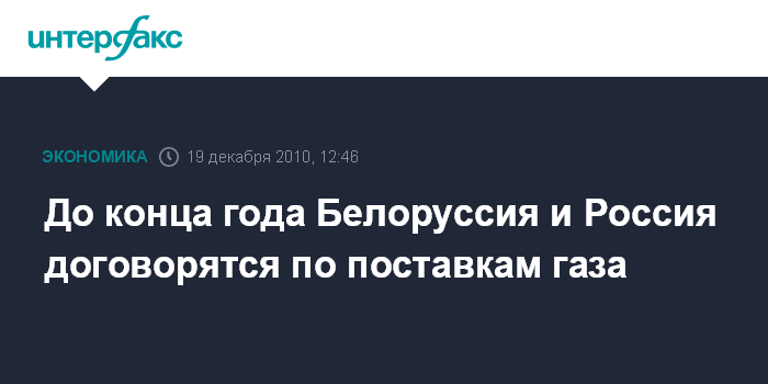 До конца года Белоруссия и Россия договорятся по поставкам газа