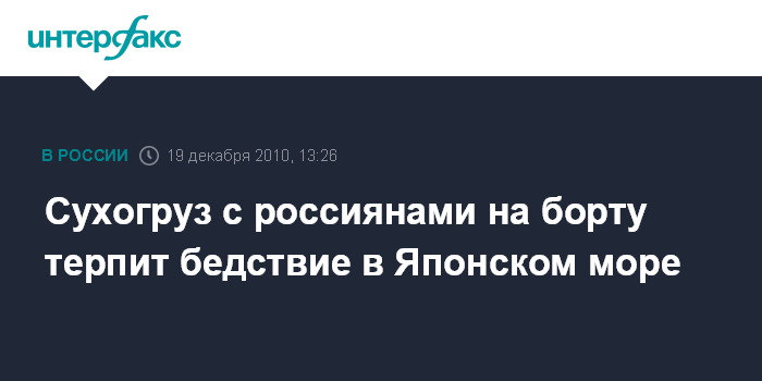 Сухогруз с россиянами на борту терпит бедствие в Японском море