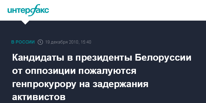 Кандидаты в президенты Белоруссии от оппозиции пожалуются генпрокурору на задержания активистов
