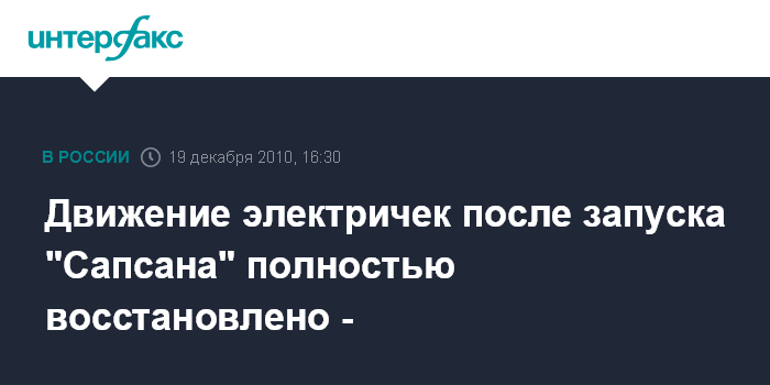 Москва. 19 декабря. INTERFAX.RU - ОАО "Российские железные дороги" заявляет, что полностью восстановило пригородное сообщение после запуска высокоскоростных поездов "Сапсан".