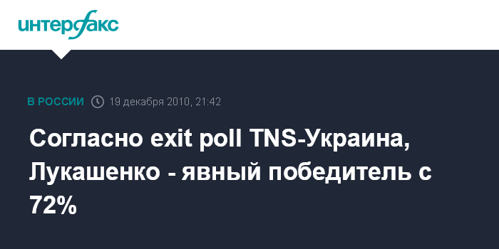 Согласно exit poll TNS-Украина, Лукашенко - явный победитель с 72%