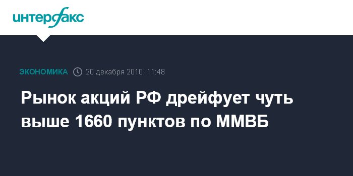 Рынок акций РФ дрейфует чуть выше 1660 пунктов по ММВБ