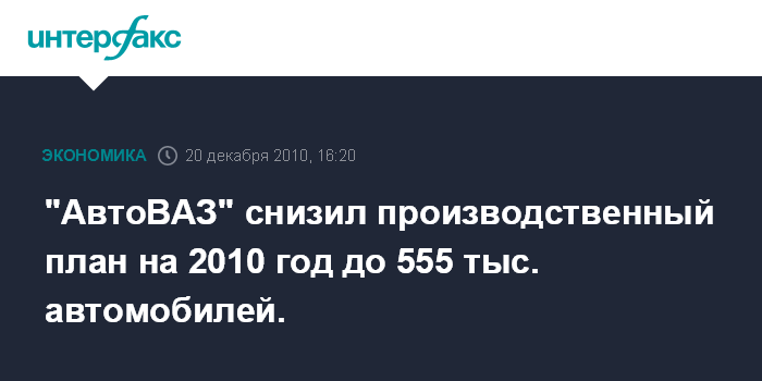 "АвтоВАЗ" снизил производственный план на 2010 год до 555 тыс. автомобилей.