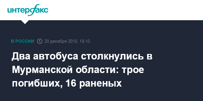 Москва. 20 декабря. INTERFAX.RU - В результате ДТП в Мурманской области три человека погибли и 16 получили ранения различной степени тяжести, заявляют в МЧС РФ.