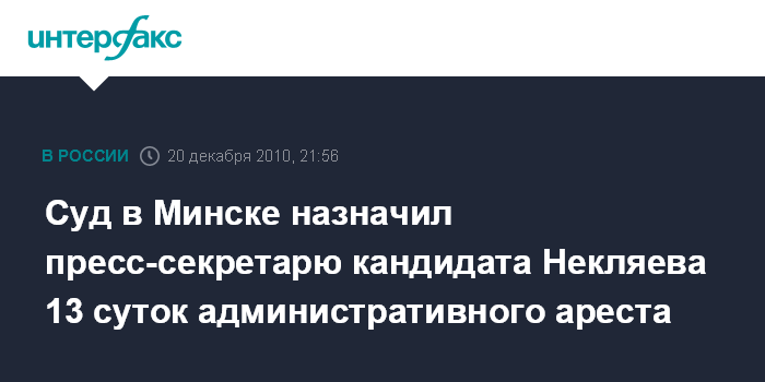 Суд в Минске назначил пресс-секретарю кандидата Некляева 13 суток административного ареста