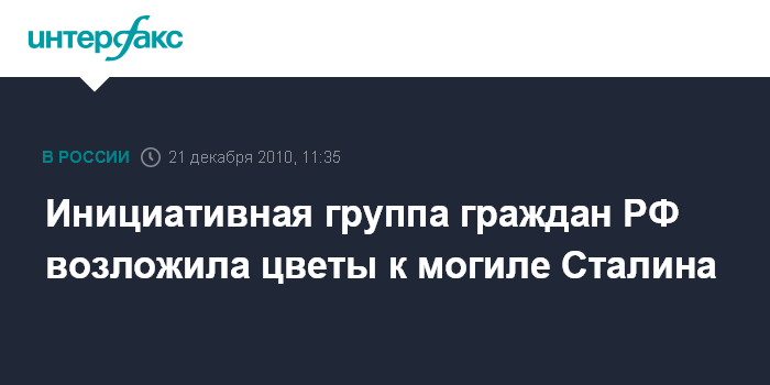 Москва. 21 декабря. INTERFAX.RU - Группа российских граждан 21 декабря, в день рождения Иосифа Сталина, возложила несколько тысяч красных гвоздик к его могиле у Кремлевской стены в Москве, передает корреспондент "Интерфакса".