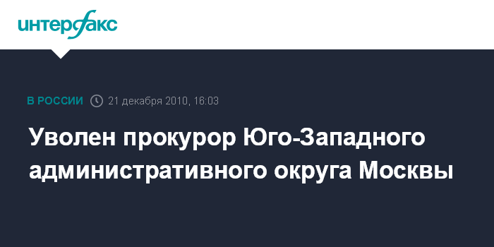 Уволен прокурор Юго-Западного административного округа Москвы
