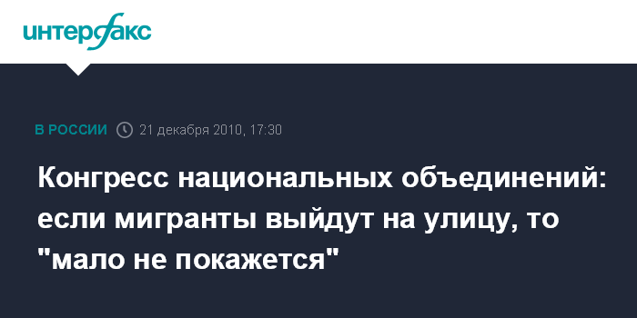 Москва. 21 декабря. INTERFAX.RU - Президент Конгресса национальных объединений России Владимир Хомерики считает, что в стране важно не допустить возмущения мигрантов из стран СНГ в связи с недавними событиями.