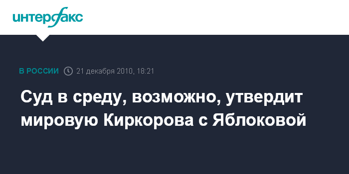 "В ходе подготовки к слушанию по уголовному делу частного обвинения в отношении Киркорова в Пресненский районный суд явились стороны по данному делу. Суд разъяснил подсудимому Киркорову и частному обвинителю, потерпевшей Яблоковой их процессуальные права, в том числе и на примирение", - сказала "Интерфаксу" пресс-секретарь суда Ольга Сутяпова.