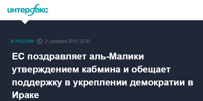 ЕС поздравляет аль-Малики утверждением кабмина и обещает поддержку в укреплении демократии в Ираке
