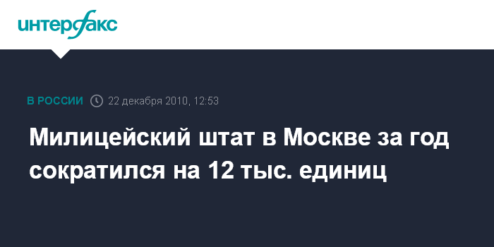 Милицейский штат в Москве за год сократился на 12 тыс. единиц