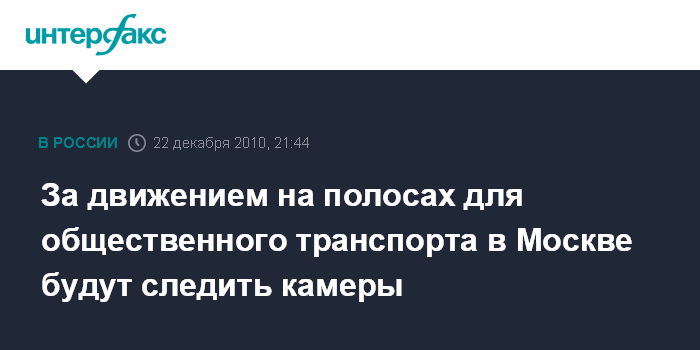 Москва. 22 декабря. INTERFAX.RU - В Москве будут установлены специальные видеокамеры для контроля за использованием выделенных полос общественного транспорта, заявил в прямом эфире программы "Наш город" на телеканале ТВЦ в среду мэр Москвы Сергей Собянин.