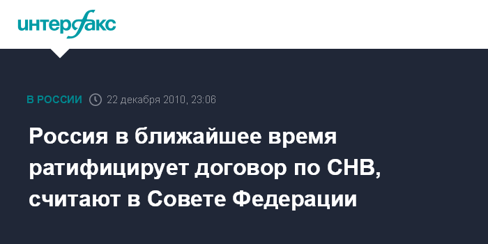 Россия в ближайшее время ратифицирует договор по СНВ, считают в Совете Федерации