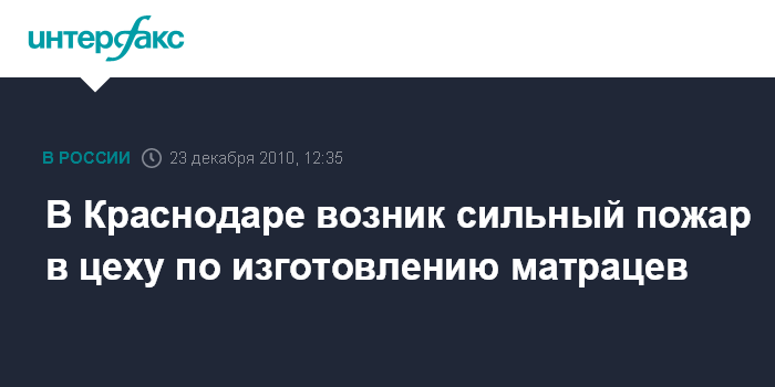 Краснодар. 23 декабря. INTERFAX.RU - Сотрудники МЧС тушат крупный пожар в цеху по изготовлению матрацев в Краснодаре, сообщили агентству "Интерфакс-Юг" в четверг в пресс-службе региональном управлении МЧС РФ.