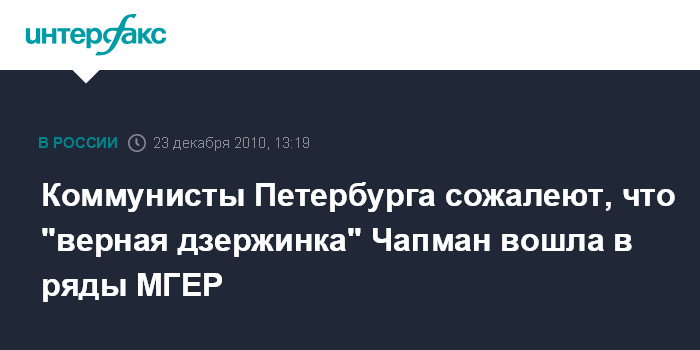 Коммунисты Петербурга сожалеют, что "верная дзержинка" Чапман вошла в ряды МГЕР