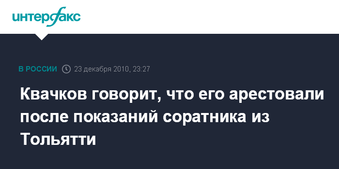 Между тем, по словам В.Квачкова, его Тольяттинский сторонник "толком ничего не говорил". "Он дал показания, сказал, что ездил ко мне в Москву", - отметил В.Квачков.