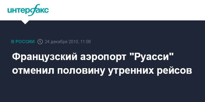 Париж. 24 декабря. INTERFAX.RU - Управление по гражданской авиации Франции объявило в пятницу об отмене половины утренних рейсов в международном парижском аэропорту "Руасси", информирует агентство EFE.