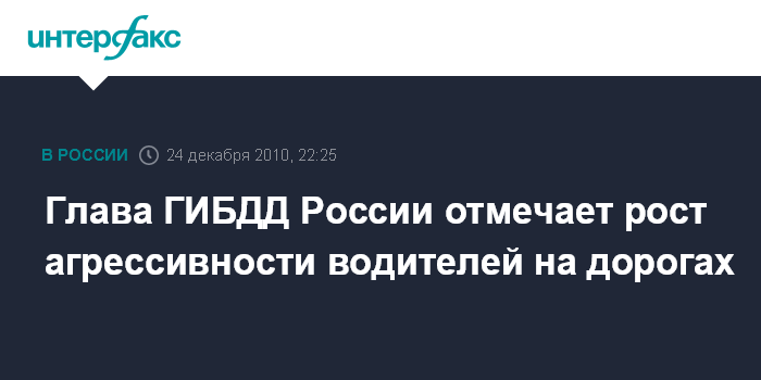 Глава ГИБДД России отмечает рост агрессивности водителей на дорогах