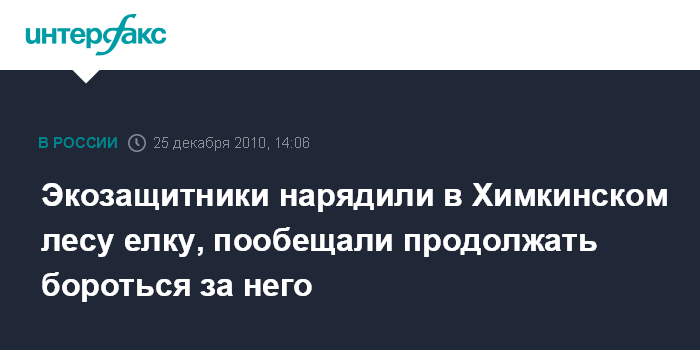 Москва. 25 декабря. INTERFAX.RU - Около двух десятков защитников Химкинского леса вместе с детьми нарядили в лесу елку в знак того, что он не должен быть вырублен.