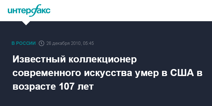 Известный коллекционер современного искусства умер в США в возрасте 107 лет