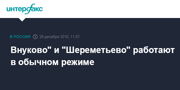 Москва. 26 декабря. INTERFAX.RU - Аэропорты "Внуково" и "Шереметьево" функционируют в штатном режиме, плохие метеоусловия не повлияли на их работу, сообщил "Интерфаксу" официальный представитель Росавиации.
