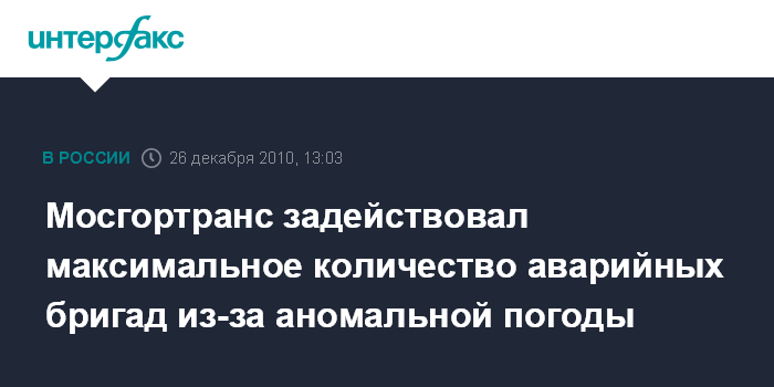 Москва. 26 декабря. INTERFAX.RU - На столичные дороги для ликвидации последствий обрывов проводов наземного электрического транспорта ГУП "Мосгортранс" вывел максимальное количество аварийных бригад.