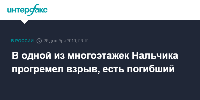 Ростов-на-Дону. 28 декабря. ИНТЕРФАКС-ЮГ - Неустановленное взрывное устройство сработало в одной из квартир на первом этаже 60-квартирного жилого дома в Нальчике, сообщили агентству "Интерфакс-Юг" в экстренных службах региона во вторник.