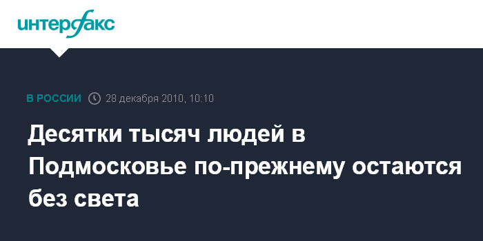 Москва. 28 декабря. INTERFAX.RU - Жители 258 населенных пунктов в Московской области остаются без электричества на утро вторника, сообщает МЧС России.