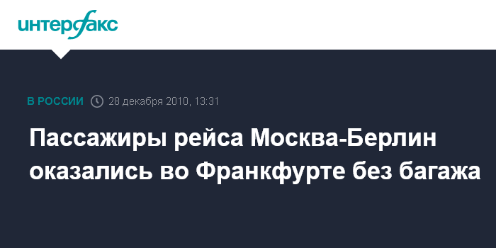 Пассажиры рейса Москва-Берлин оказались во Франкфурте без багажа