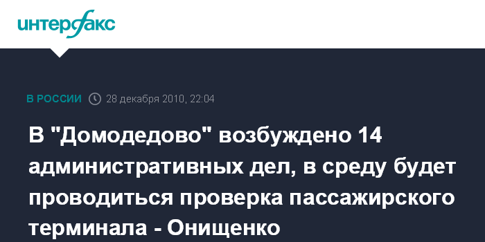 В "Домодедово" возбуждено 14 административных дел, в среду будет проводиться проверка пассажирского терминала - Онищенко