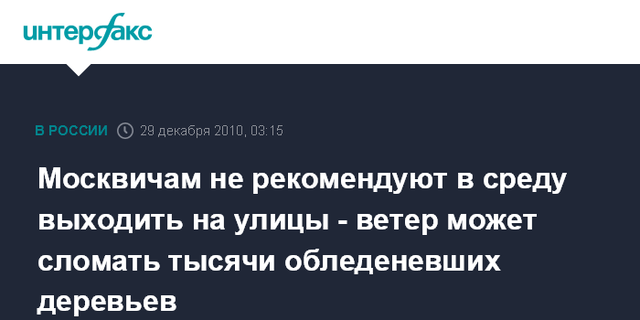 Москвичам не рекомендуют в среду выходить на улицы - ветер может сломать тысячи обледеневших деревьев