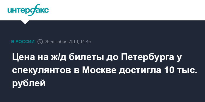 Цена на ж/д билеты до Петербурга у спекулянтов в Москве достигла 10 тыс. рублей