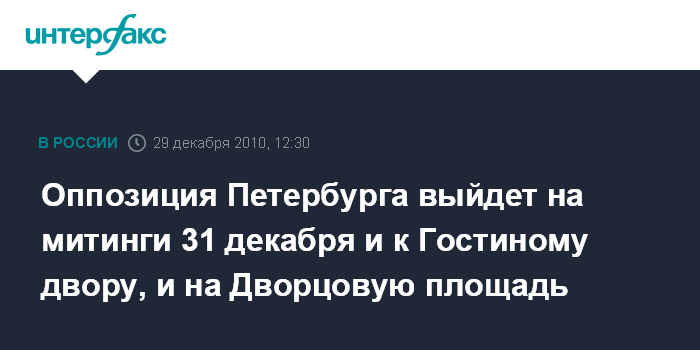 Санкт-Петербург. 29 декабря. INTERFAX.RU - Представители двух оппозиционных лагерей Петербурга окончательно определились с планами митингов в центре города в предновогодний вечер в рамках "Стратегии-31".