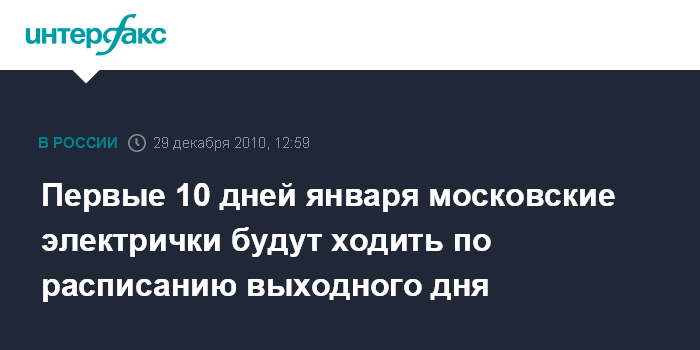 "С 1 по 10 января 2011 года пригородные электропоезда будут ходить расписанием выходного дня", - рассказал собеседник агентства.