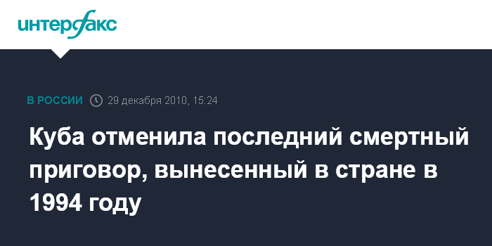 Как сообщается, последним, кто на Кубе был приговорен к смертной казни, стал 40-летний американец кубинского происхождения Умберто Эладио Реаль, осужденный за убийство в ходе беспорядков в 1994 году.