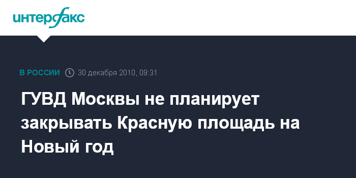 Москва. 30 декабря. INTERFAX.RU - Красная площадь в новогоднюю ночь будет открыта для москвичей, заявил "Интерфаксу" официальный представитель ГУВД Москвы Виктор Бирюков.