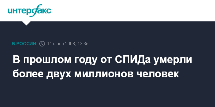Нью-Йорк (ООН). 11 июня. INTERFAX.RU - В прошлом году было зарегистрировано 2,5 млн новых случаев заражения ВИЧ/СПИДом, более двух миллионов человек умерли от этого заболевания, сообщил генсек ООН Пан Ги Мун.