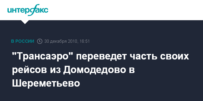"Трансаэро" переведет часть своих рейсов из Домодедово в Шереметьево