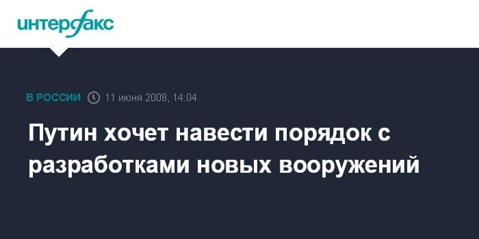 Москва. 11 июня. INTERFAX.RU - Премьер-министр РФ Владимир Путин потребовал навести порядок со сроками разработки новых видов вооружений для российской армии и флота. "Важно принять финансовые решения для скорейшего завершения действительно перспективных опытно-конструкторских разработок, начатых в прошлые годы. Нужно навести порядок со сроками их исполнения", - сказал В.Путин на совещании во вторник по вопросам формирования гособоронзаказа на 2009-2011 годы.