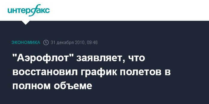 Москва. 31 декабря. IINTERFAX.RU - "Аэрофлот - российские авиалинии" восстановил график полетов в полном объеме. В настоящее время все рейсы авиакомпании выполняются по расписанию, говорится в сообщении "Аэрофлота".