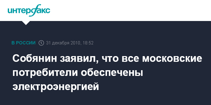 Собянин заявил, что все московские потребители обеспечены электроэнергией