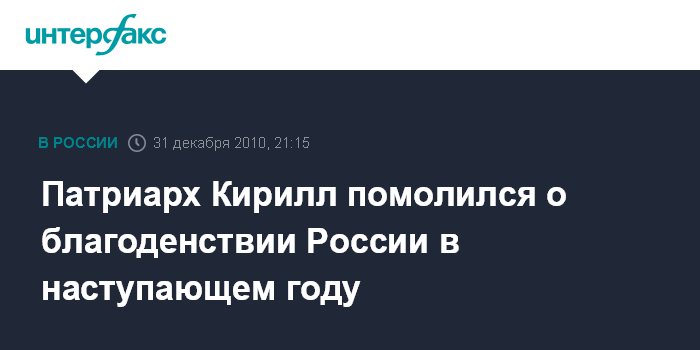 Москва. 31 декабря. INTERFAX.RU - Патриарх Московский и всея Руси Кирилл в пятницу вечером совершил в храме Христа Спасителя молебен о даровании мира и благоденствия России в наступающем Новом году.
