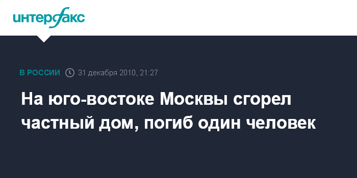 Москва. 31 декабря. INTERFAX.RU - В результате пожара на юго-востоке Москвы погиб человек.